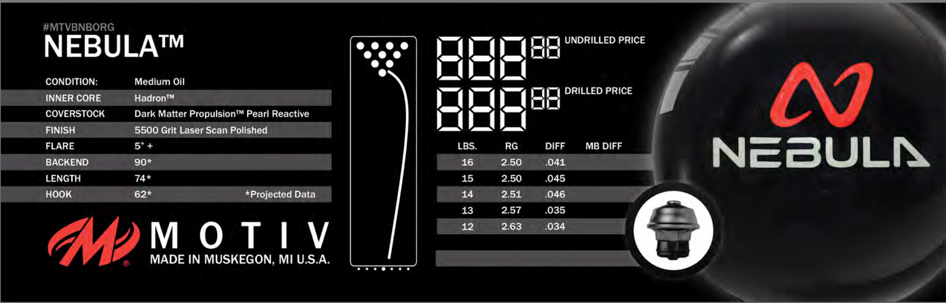 Speed Dominant - For bowlers with higher ball speed and/or lower rev rates, the Nebula will likely serve as an angular ball best used on friction. Speed dominant bowlers require more friction than most, so rather than being a medium oil pearl, the Nebula will likely serve as a medium-dry to dry lane solution when the bowler needs angle.